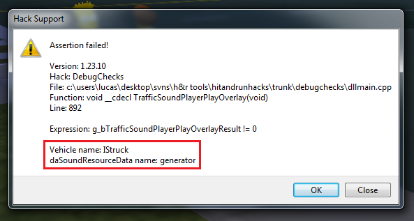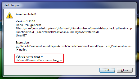 - In other words, this assert can appear after the game tries and fails to play vehicle sounds.